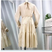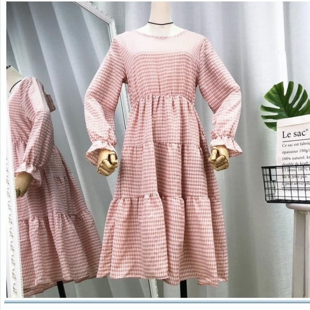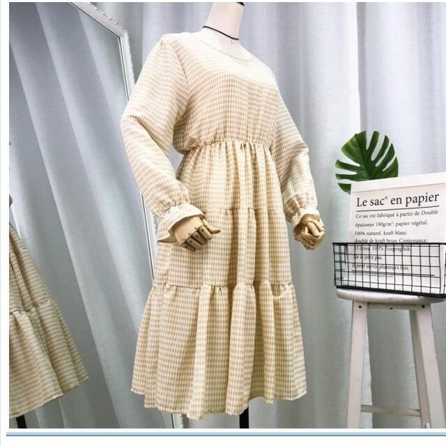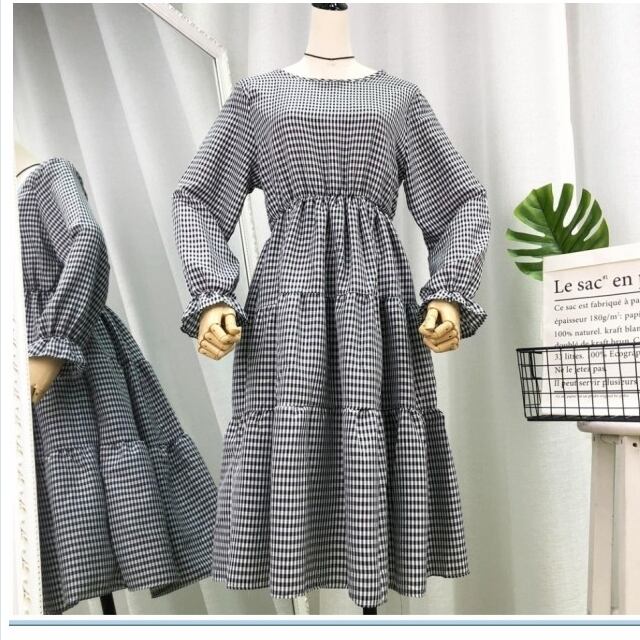 クラシカル ワンピース レトロ ロング クラシカル レディース 長袖ワンピース フリル キャンディスリーブ チェック柄 ガーリー キュート