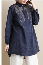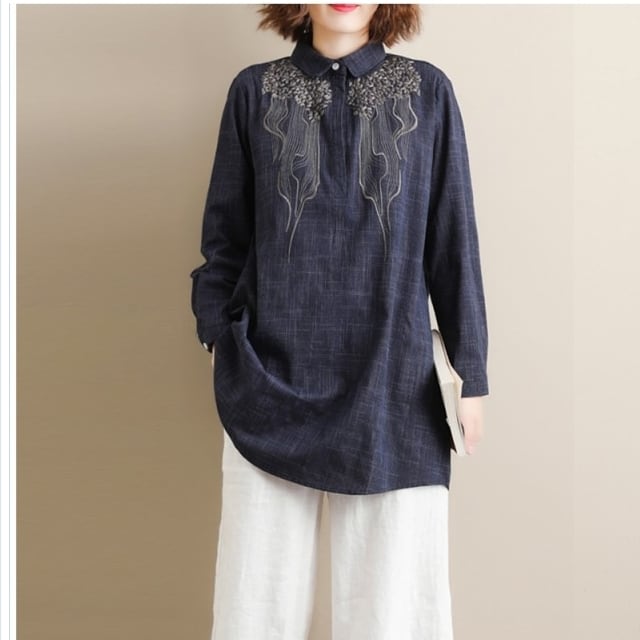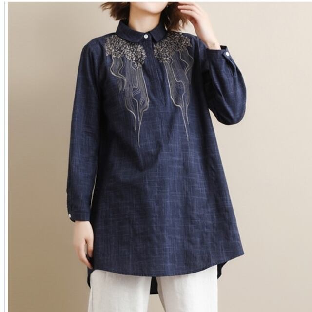 レディース ロングtシャツワンピース 大きいサイズ 春秋冬 新作 シャツ レディース 刺繍 長袖 トップス チュニック ブラウス おしゃれ 可