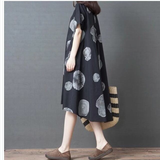 大きいサイズ レディース トップス 半袖 秋新作 落ち着き感あるコーデの主役にサークルプリント柄チュニックワンピース 大きいサイズ