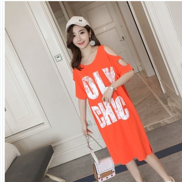 レディース ロングtシャツワンピース 大きいサイズ 大きいサイズ レディース Tシャツ 英字ロゴ 裾切りっぱなしチュニック 半袖 大人体型