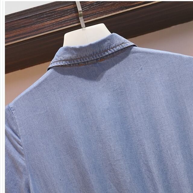 夏物ワンピース デニムワンピース 半袖 レディース シャツワンピ ロング丈 デニム 半袖ワンピース 女性用 夏物 薄手 ウエスト調整可 ロン