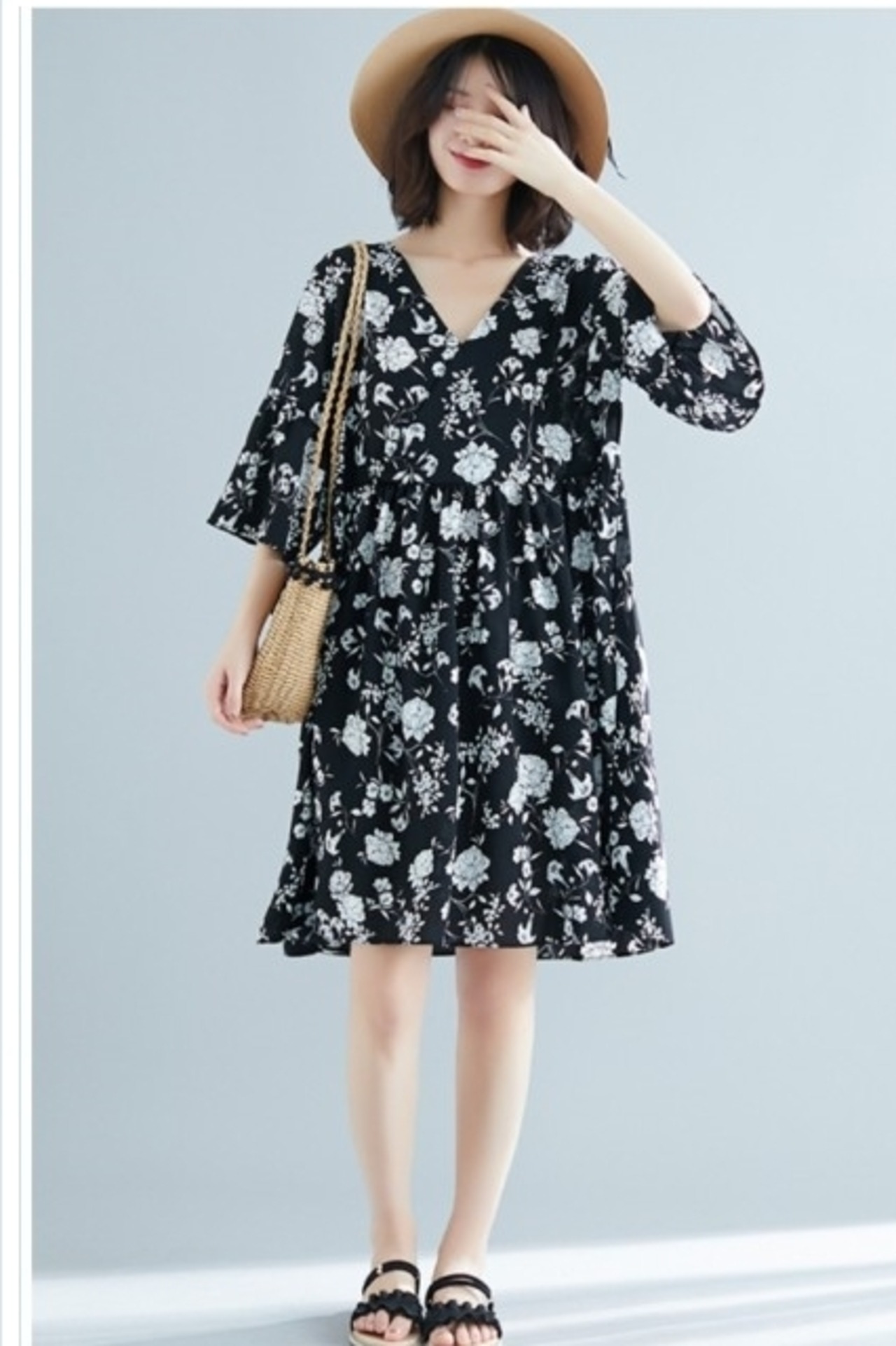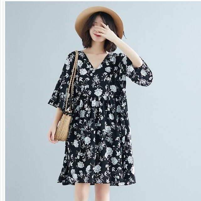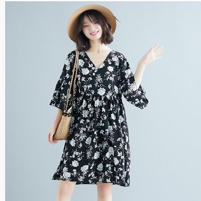 ワンピース ロング ロングワンピース 春夏 ロングワンピース 大きいサイズ 夏 ワンピース ロング 春 夏 半袖 ミ二 大きいサイズ フレア花