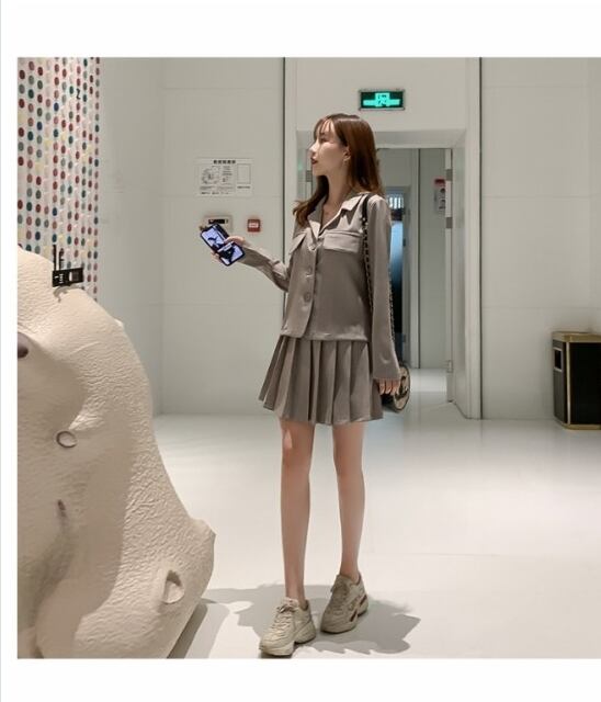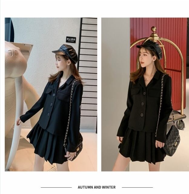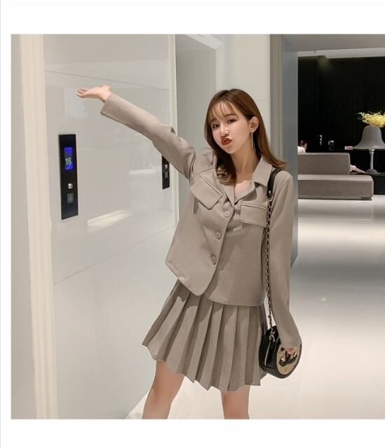 ニットワンピース 韓国 秋 冬 韓国 ファッション レディース セットアップ 秋 冬 カジュアル ショートジャケット プリーツ ミニスカート