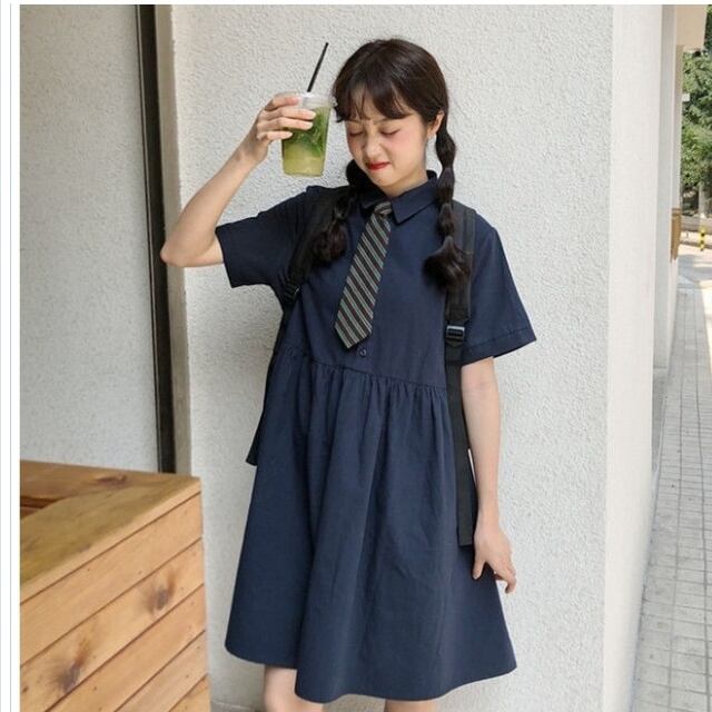夏物ワンピース 学園風レディースマリンセーラー 森ガール海軍風 半袖ワンピース セーラー襟ワンピ 通学 夏物ロリータ