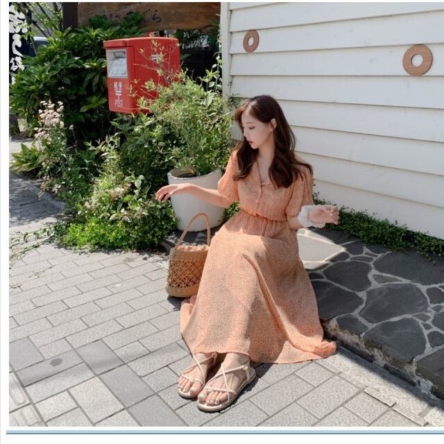 ワンピース 夏新作 大きいサイズ ワンピース シフォン ドットプリント 肩フリル ロングワンピース