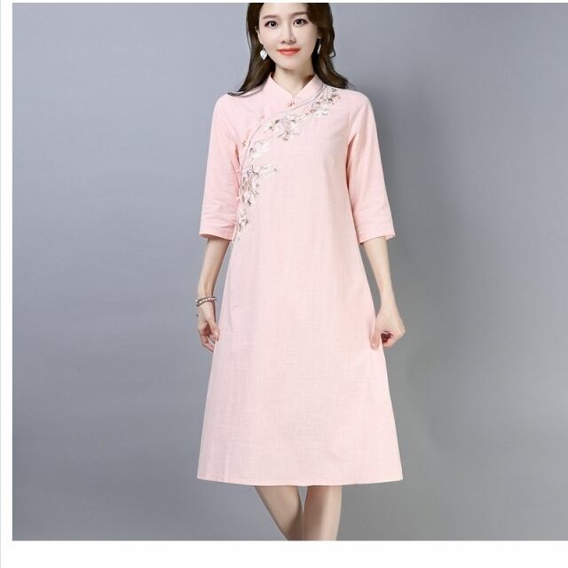 チャイナドレス風 ワンピース チャイナ風ワンピース カジュアル チャイナ風服 中華服 民族風 スタンドネック 長袖 ロング丈 普段着 S M L
