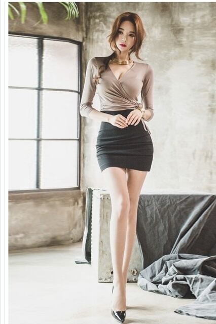 大きいサイズのレディースワンピース ワンピース ミニワンピ ショート丈 タイトワンピース vネックワンピース 長袖 韓国風タイト ミニ丈