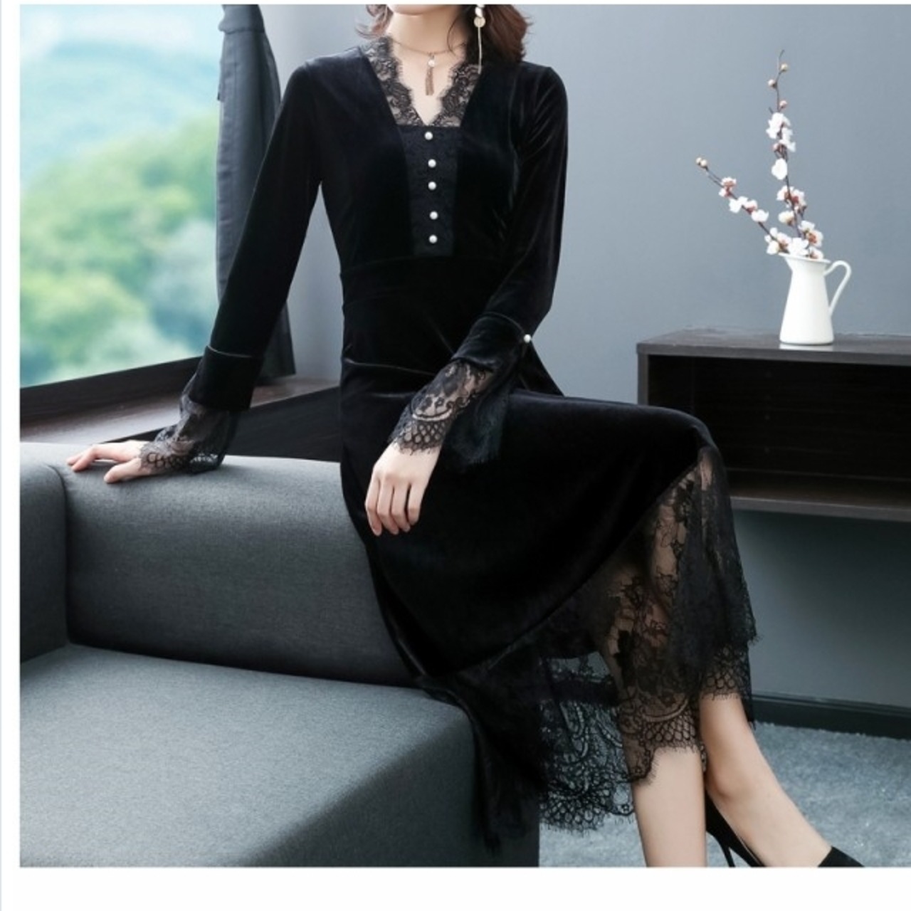 クラシカル ワンピース 韓国 ファッション レディース ワンピース パーティードレス ロング マキシ 秋 冬 春 パーティー ブライダル 結婚