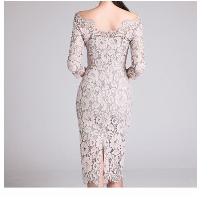 クラシカル ワンピース ワンピース ドレス パーティードレス レディース タイト 総レース 花柄 オフショルダー 袖あり ひざ丈