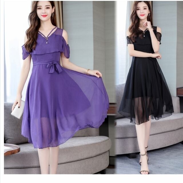 クラシカル ワンピース ひざ丈 レース 長袖 フレア ドレス ワンピース お呼ばれ 同窓会 結婚式 二次会 シフォン 襟なし 袖あり クラシカ