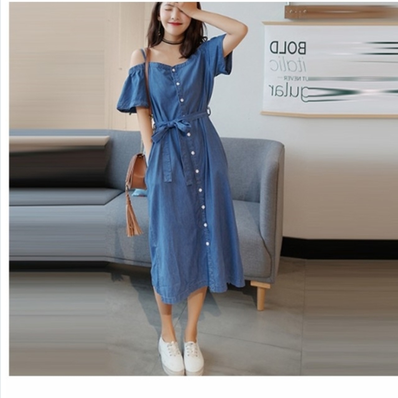 クラシカル ワンピース デニム ロング丈ワンピース
