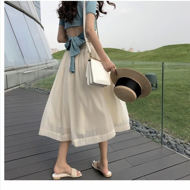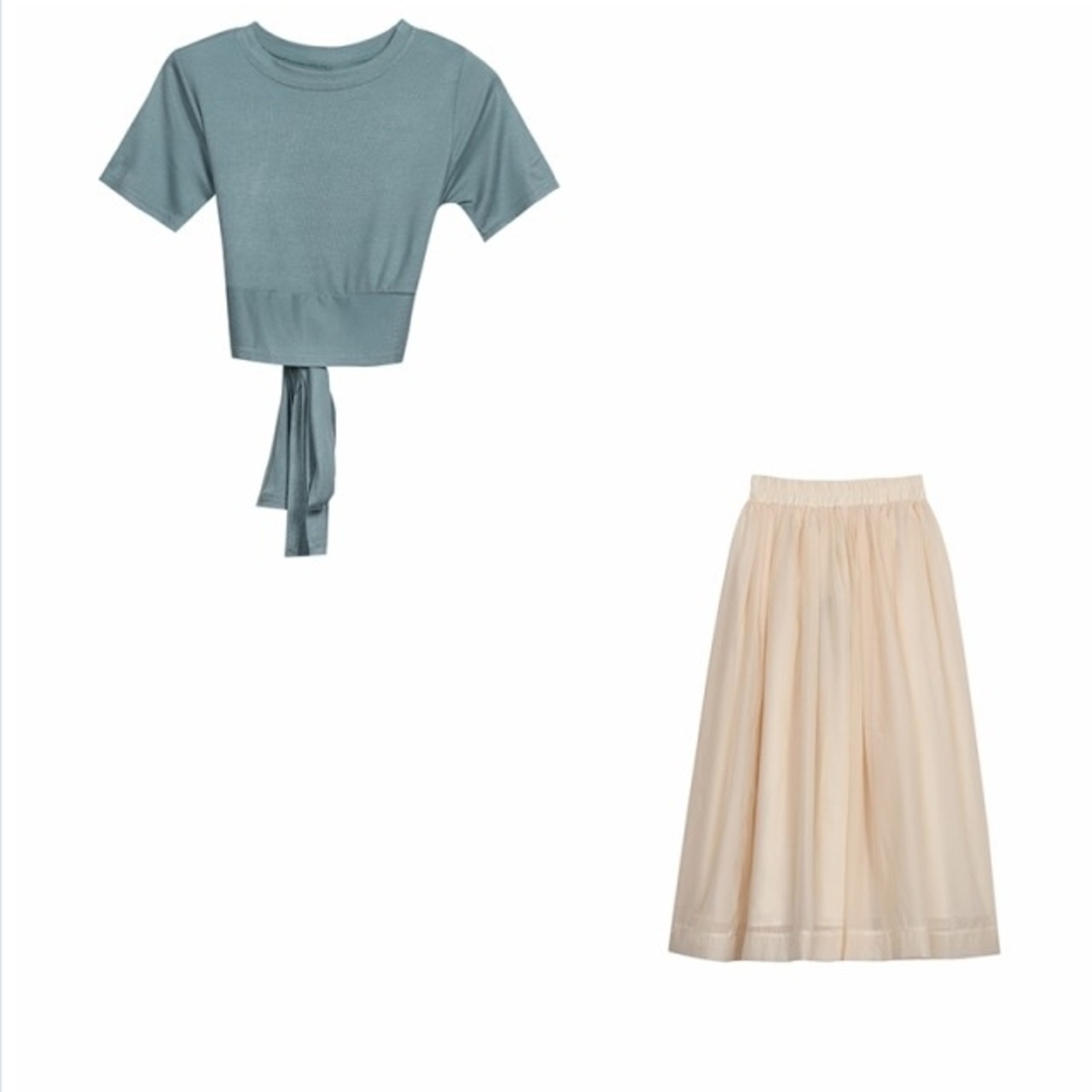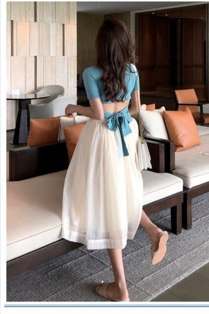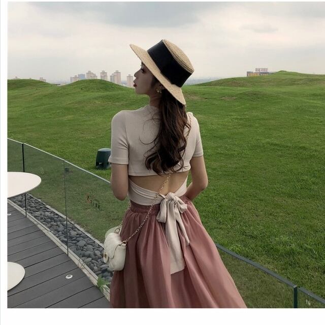夏服 レディース セットアップ レディース 春夏 セットアップ レディース サマー 背中見せ 腰見せ 半袖カットソー フレア 膝下スカート