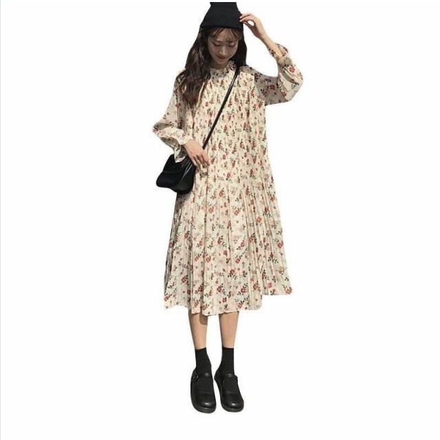 クラシカル ワンピース ワンピース レディース 長袖ワンピース 花柄ワンピース レトロ ロング クラシカル 花柄 上品 ハイネック キャンデ