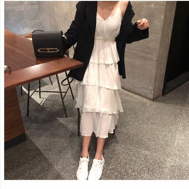クラシカル ワンピース ワンピース レディース キャミソールワンピース ティアード フリル Vネック きれいめ デート お呼ばれ