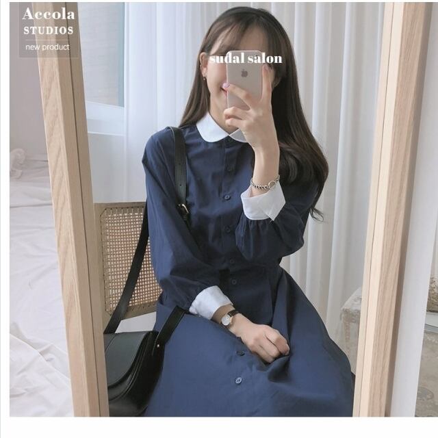 クラシカル ワンピース 新作 クラシカル 前開き ガーリー シャツミディワンピース