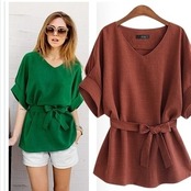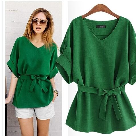 大きいサイズ レディース トップス 半袖 ゆるふわトップス レディース 半袖シャツ カジュアル ミディアム丈 Vネック ウエストリボン 大き