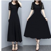 ワンピース ロング ロングワンピース 春夏 ロングワンピース 大きいサイズ 夏 ワンピース ロング丈 マキシ丈 レース 半袖 フレア 切り替