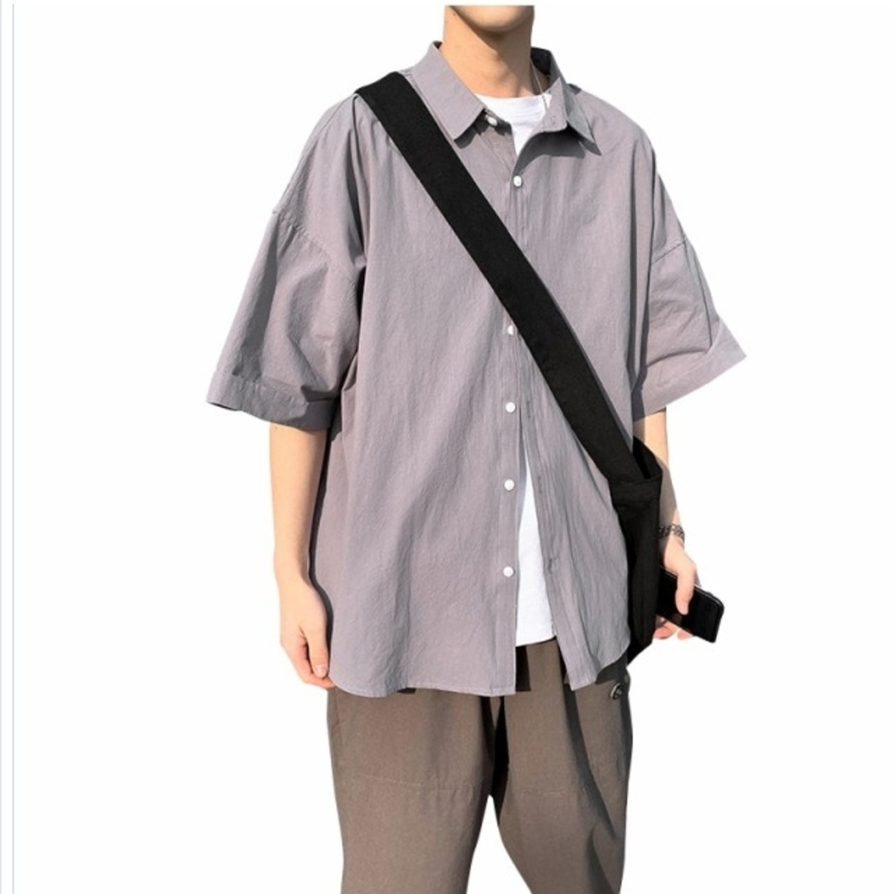 大きいサイズ レディース トップス 半袖 ワッシャー加工ノーカラーギャザーロングシャツ レディース トップス ビッグシャツ 夏 オーバー