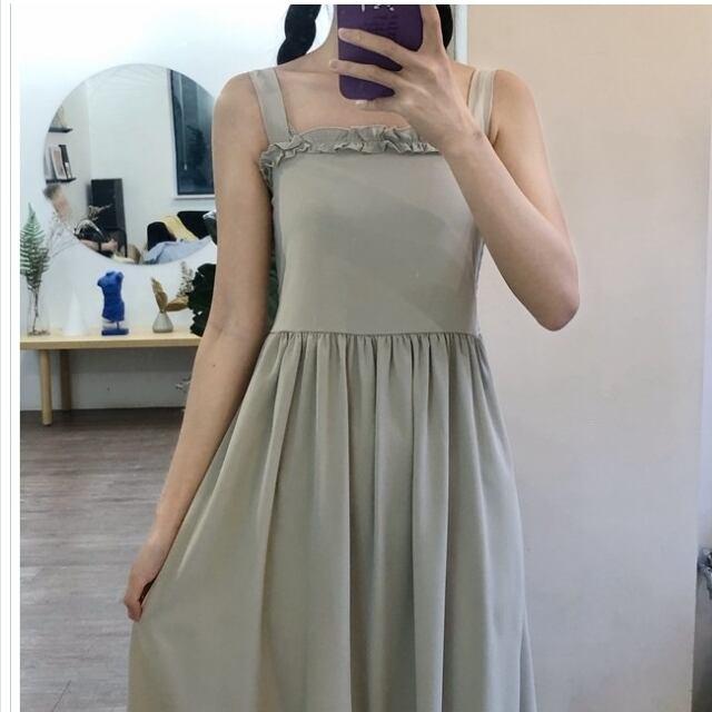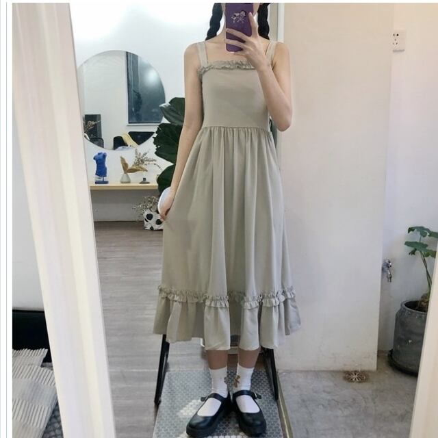 バックリボン ワンピース バックリボン ロングワンピース バカンス ノースリーブ 無地 カジュアル 裾フリル
