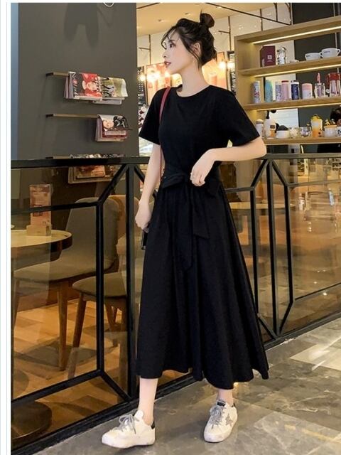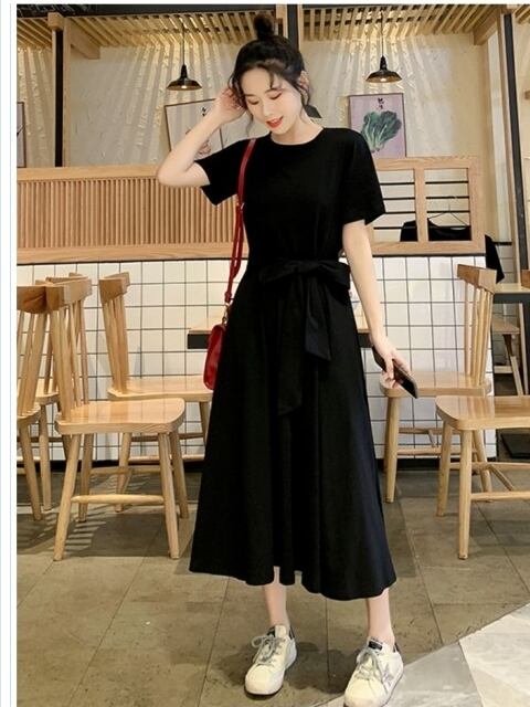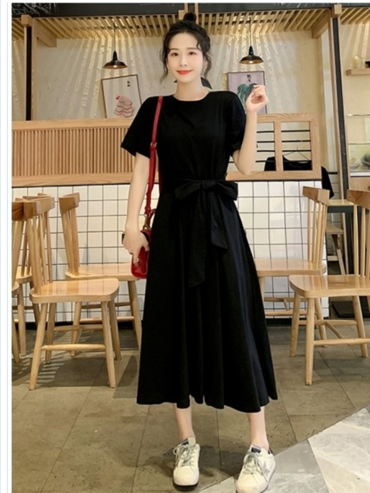 バックリボン ワンピース ワンピース フレア ロング丈 マキシ丈 半袖 無地 リボン レンガ レディース