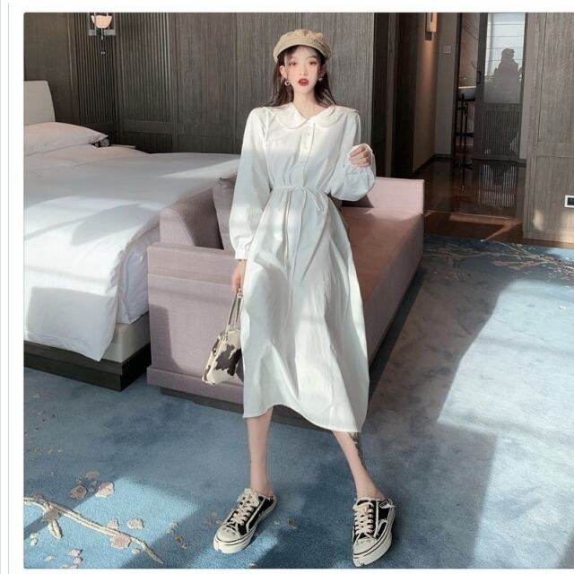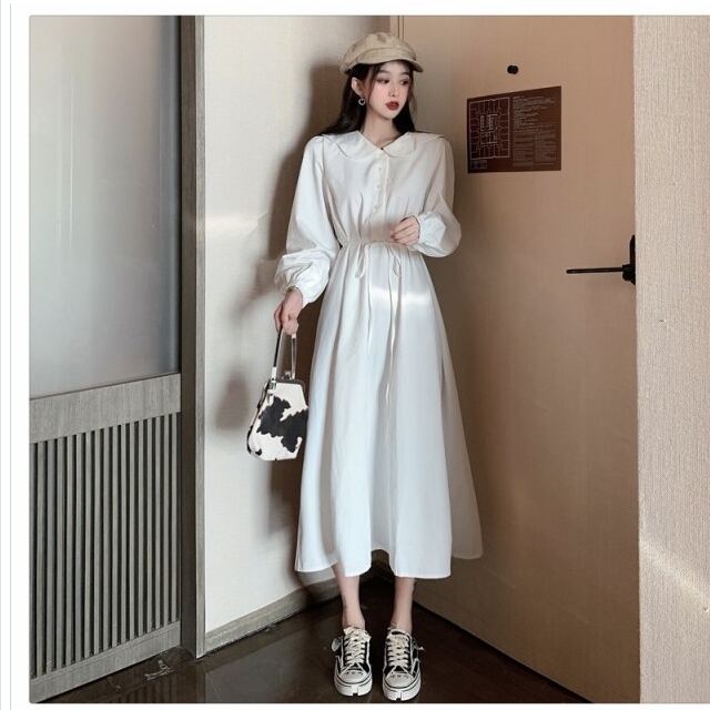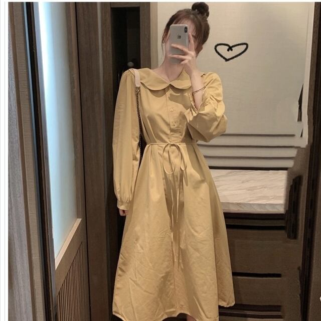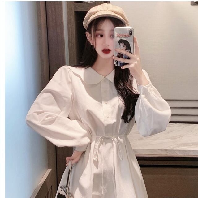バックリボン ワンピース ワンピース レディース 長袖ワンピース ロングワンピース シンプル 無地 シャツワンピース リボン お洒落 ゆっ