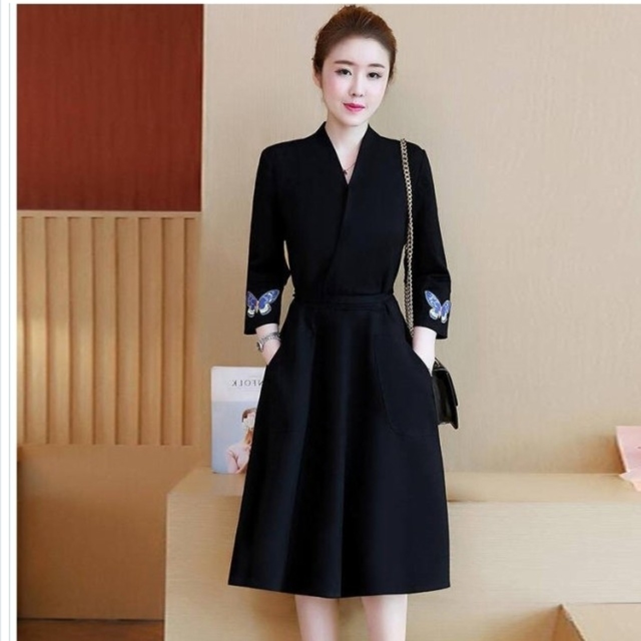 夏物ワンピース ワンピース レディース ゆったり 着痩せ 春夏物 おしゃれ Aライン ワンピ 無地 新作 Vネック カジュアル 細身 ロング丈