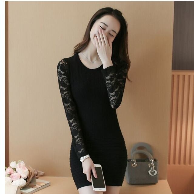 夏物ワンピース ワンピース ワンピ 長袖 総レース 着痩効果 セクシー パーティードレス タイトワンピ 無地 セレブ風 デート レディース