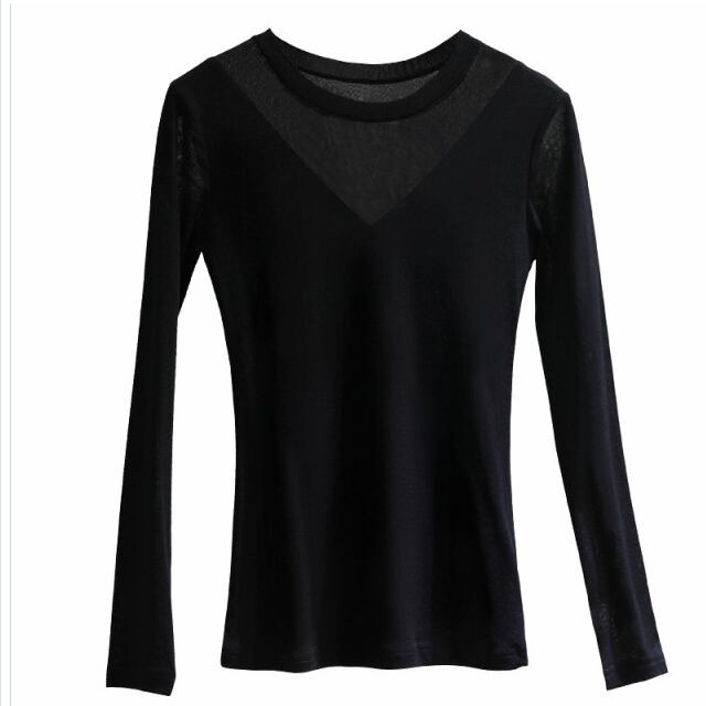 シースルー トップス 長袖 スリム ニット セーター ラウンドネック シースルー Vネック 無地 長袖 セクシー レディース ファッション ト