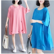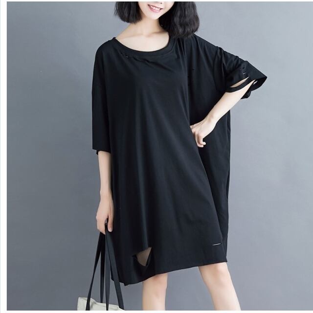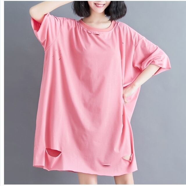 レトロ柄 ワンピース ワンピース レディース 無地ワンピース 膝下ワンピース ミモレ丈 Vネック ゆったり バットスリーブ 体型カバー 韓国