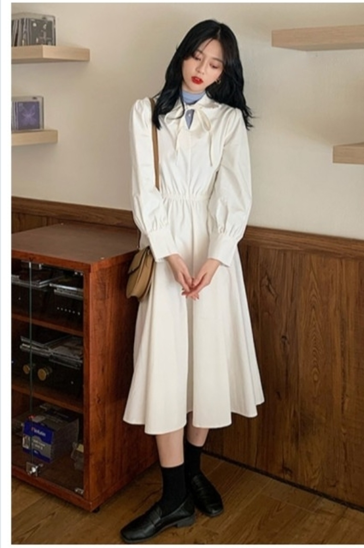レトロ柄 ワンピース ワンピース レディース 無地ワンピース ハイウエスト ロング丈 上品 ボリューム袖フォーマル
