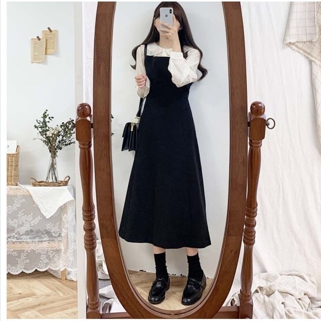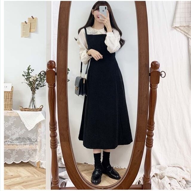レトロ柄 ワンピース ワンピース ジャンパースカート レディース かわいい ハイウエスト 流行り 人気 ミモレ丈 Aライン 無地 リボン アイ