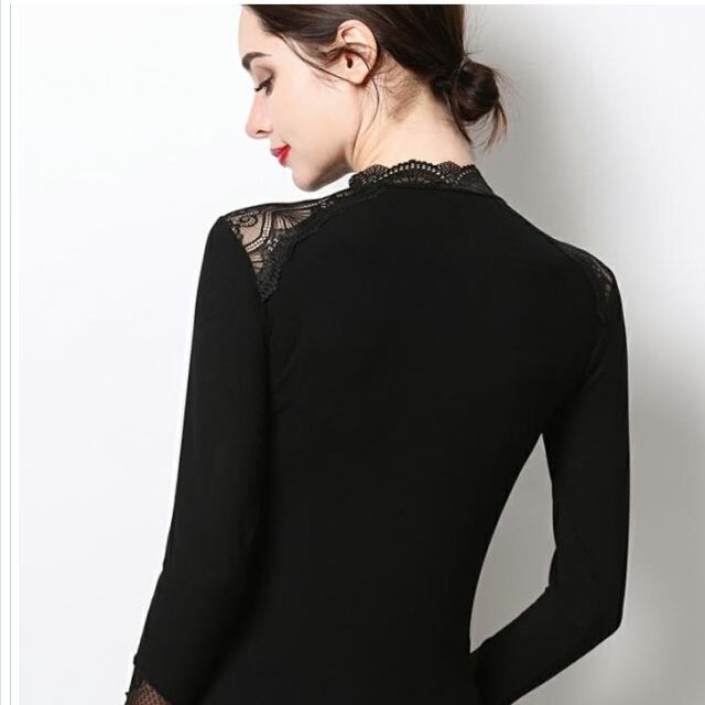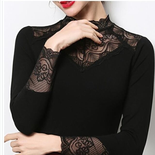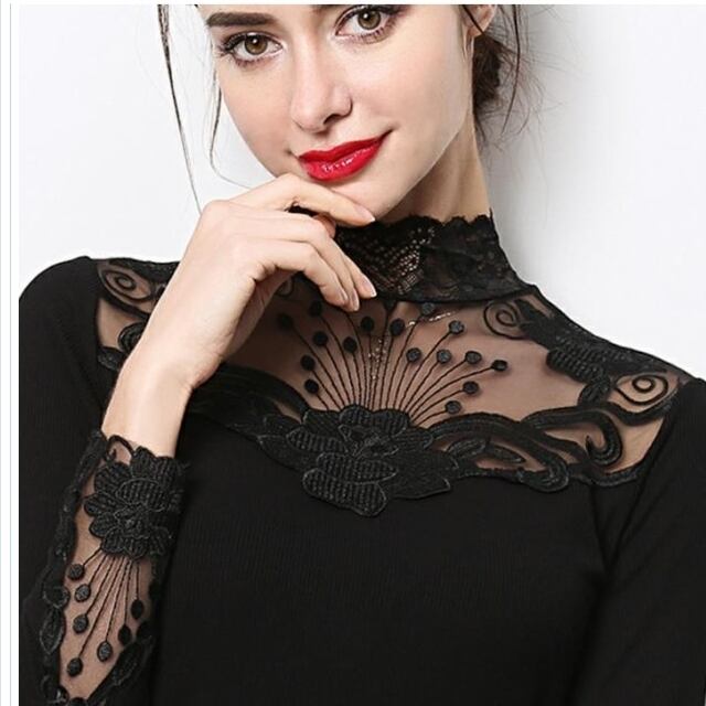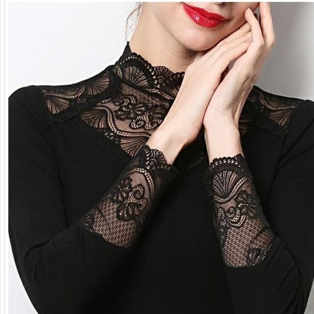 シースルー トップス 長袖 トップス コットン ハイネック 長袖 無地 袖フリル レース シースルー きれいめ 大人可愛い 春夏 お出かけ