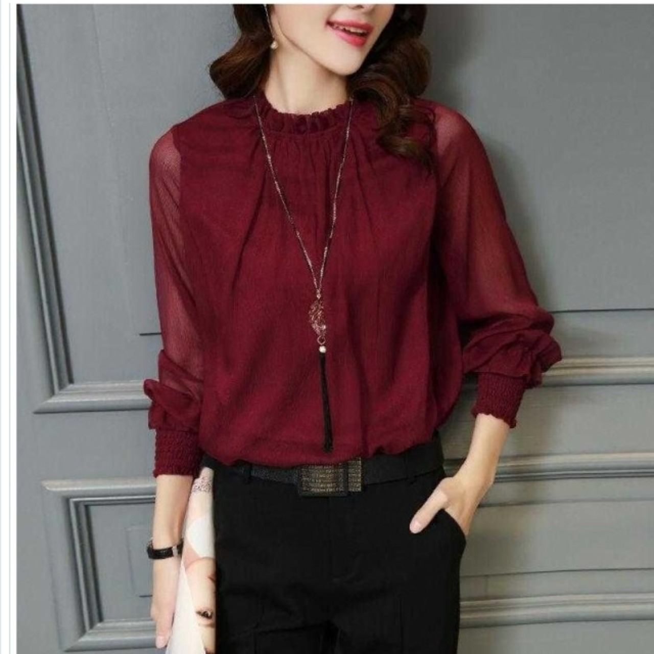 シースルー トップス 長袖 ブラウス シースルー 長袖 シフォン トップス 無地 フォーマル シャツ チュニック