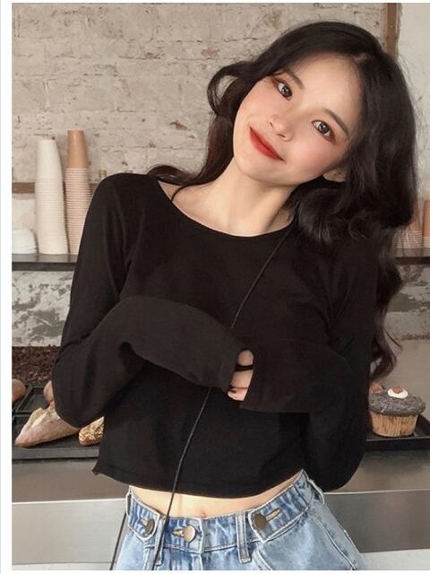 シアー トップス シアー フレアスリーブ Tシャツ クルーネック シースルー 長袖 無地 セクシー カジュアル トレンド
