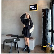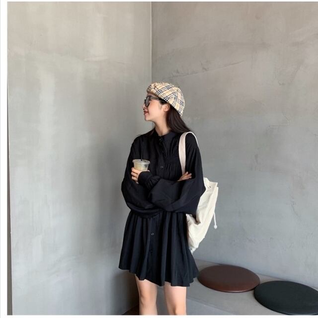 フェミニン ブラウス ドラッグハニー タイ付 ノーカラー ブラウス モノトーン 無地 長袖 トップス ゴシック モード系