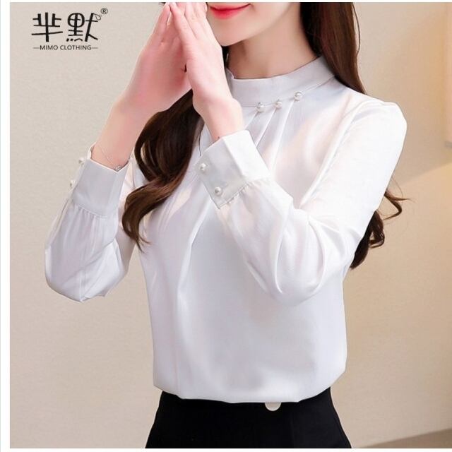 フェミニン ブラウス パールチャーム スカーフ風カラー フリルカフスブラウス 着まわし 長袖 無地 お呼ばれ 30代 40代 おすすめ おしゃれ