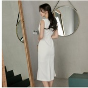 ワンピース マーメイド スラントライン ノースリーブ マーメイドワンピース 伸縮性ややあり エレガント シンプル 高級感 無地 普段づかい