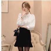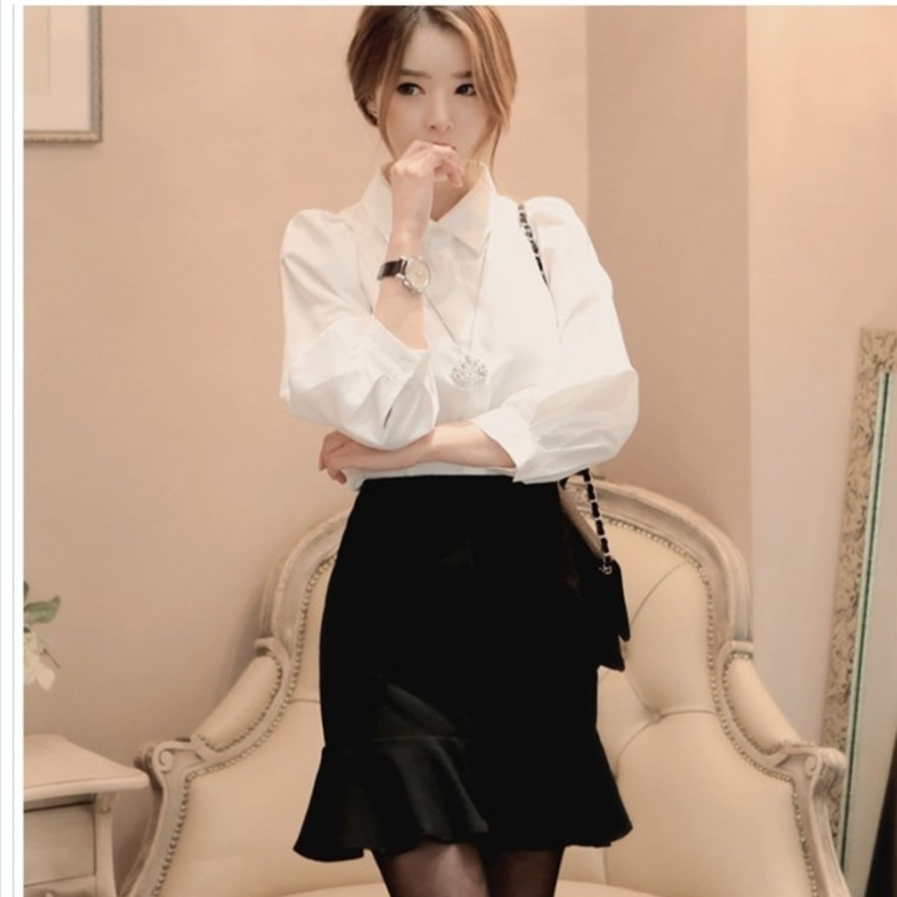 大きいサイズ コーディガン シャツ ブラウス パフスリーブ ふんわり 無地 シンプル オーバーサイズ ゆったり 大きいサイズ 長袖 フェミニ
