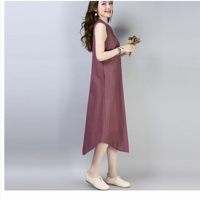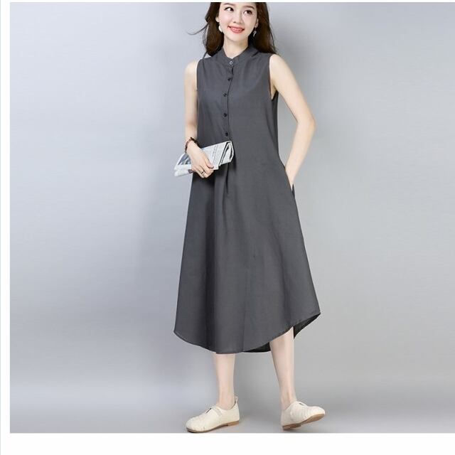 夏服 レディース ワンピース レディース 清楚 カジュアル 夏服 無地 ワンピース フロントボタン チャイナ 服 ノースリーブ 膝下丈 ミドル