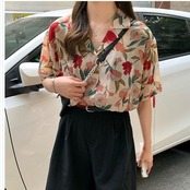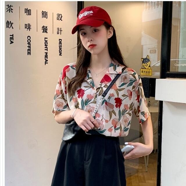 大きいサイズ レディース トップス 半袖 トップス ブラウス シフォンシャツ アロハシャツ レディース 開襟シャツ 半袖 花柄 ゆったり カ