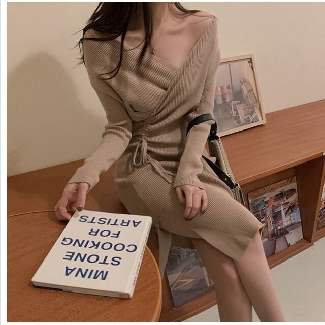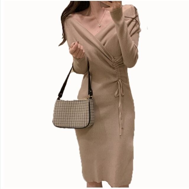 カシュクールワンピース 大きいサイズ ニットワンピース 大きいサイズ ロングニットワンピース タイト ロング リブニットワンピース スリ