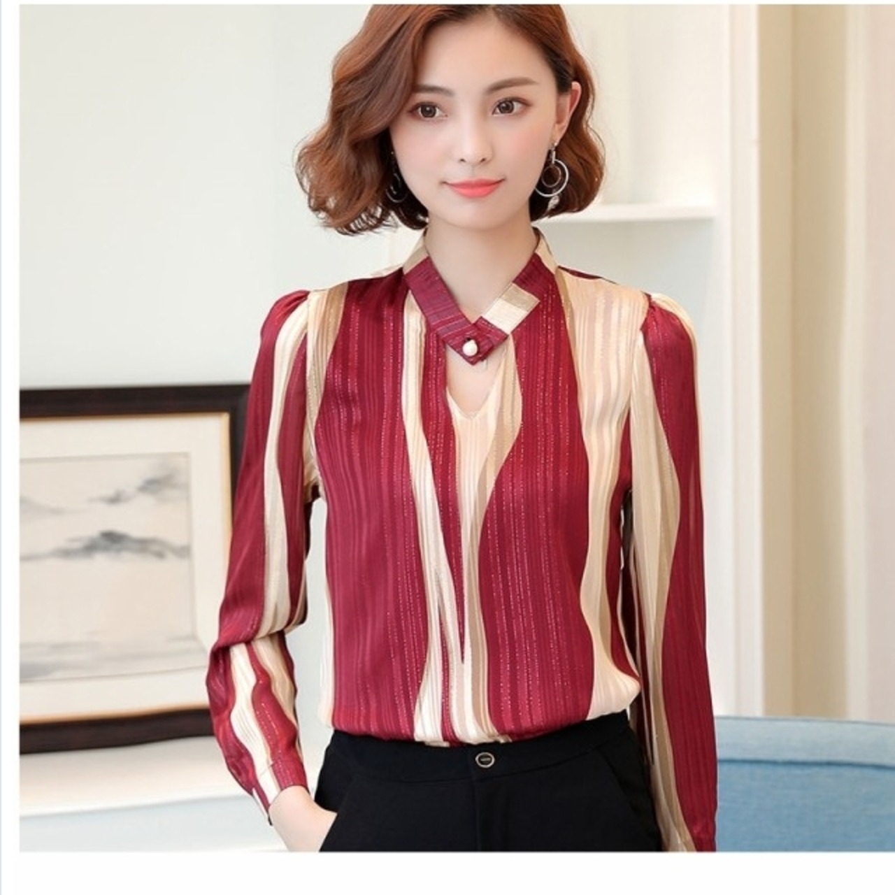 大きいサイズ トップス シフォン ストライプ シフォンブラウス 長袖 シャツ 秋服 春服 大きいサイズ レディース トップス レトロ 通勤服