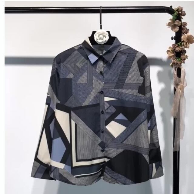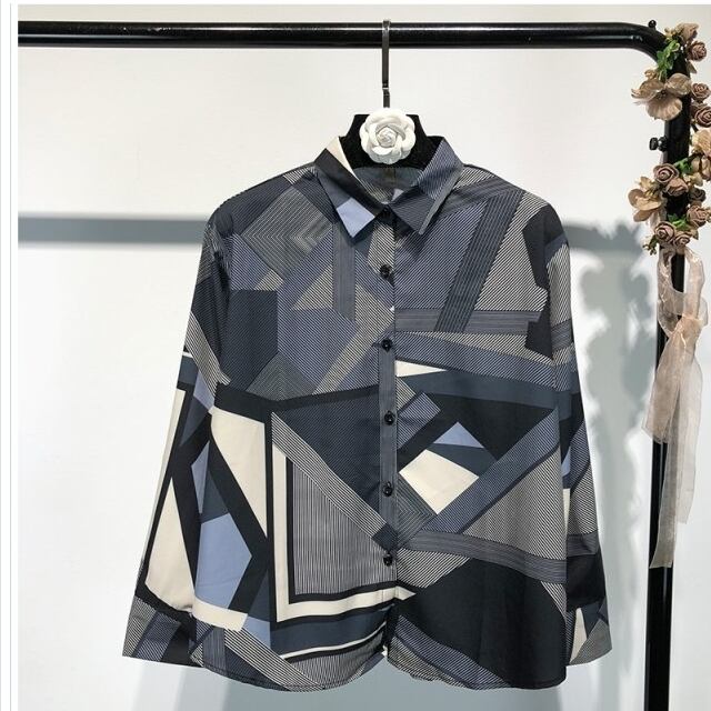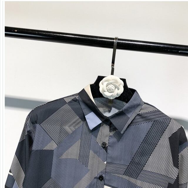大きいサイズ レディース トップス 半袖 ブラウス トップス シャツ レディース マルチストライプ ミディアム 羽織 幾何学模様 レトロ 大