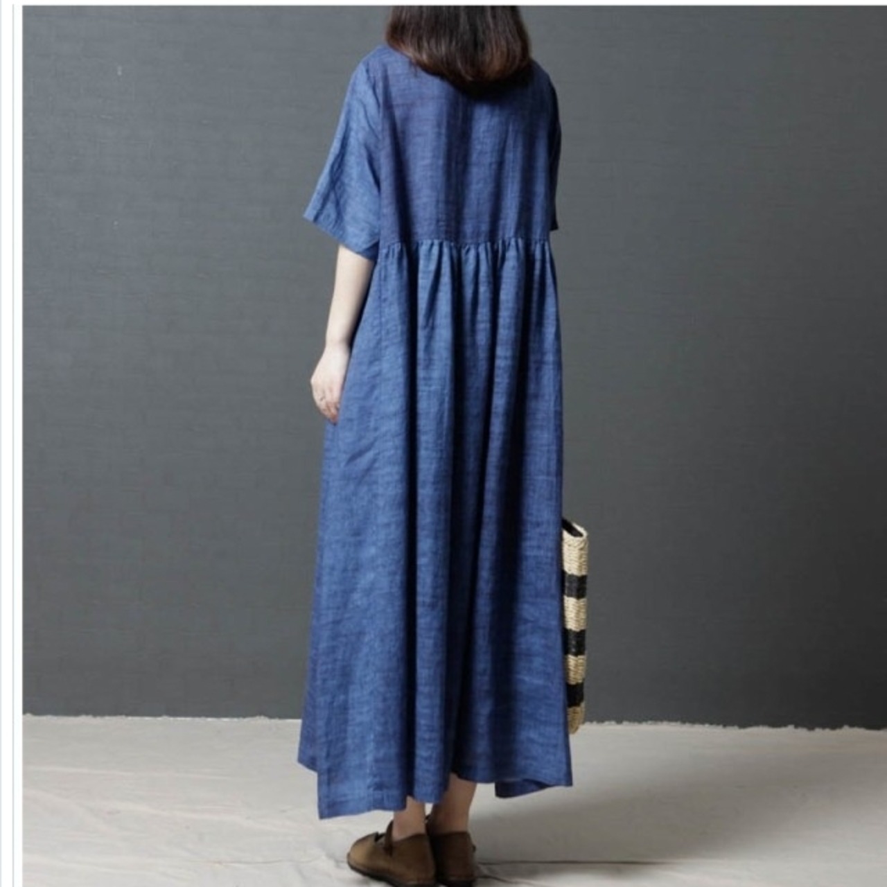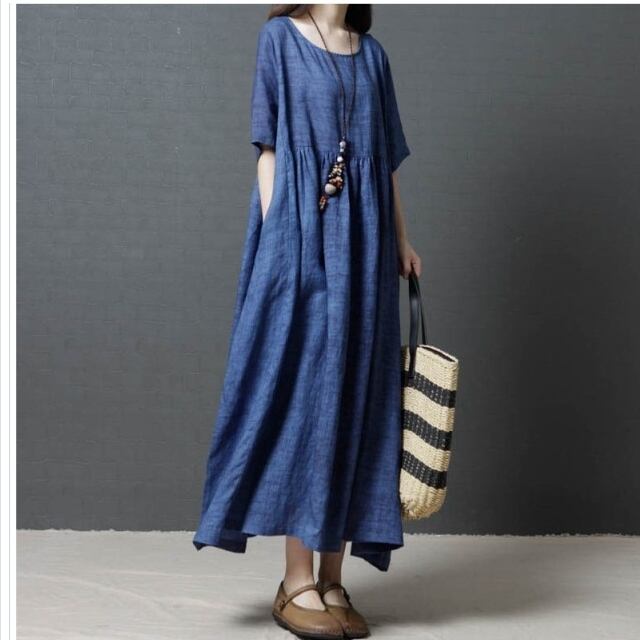 大きいサイズのレディースワンピース 春新作 ロングワンピース レディース チュニック マキシ丈 体型カバー 綿麻 夏 夏服 花柄 刺繍 無地