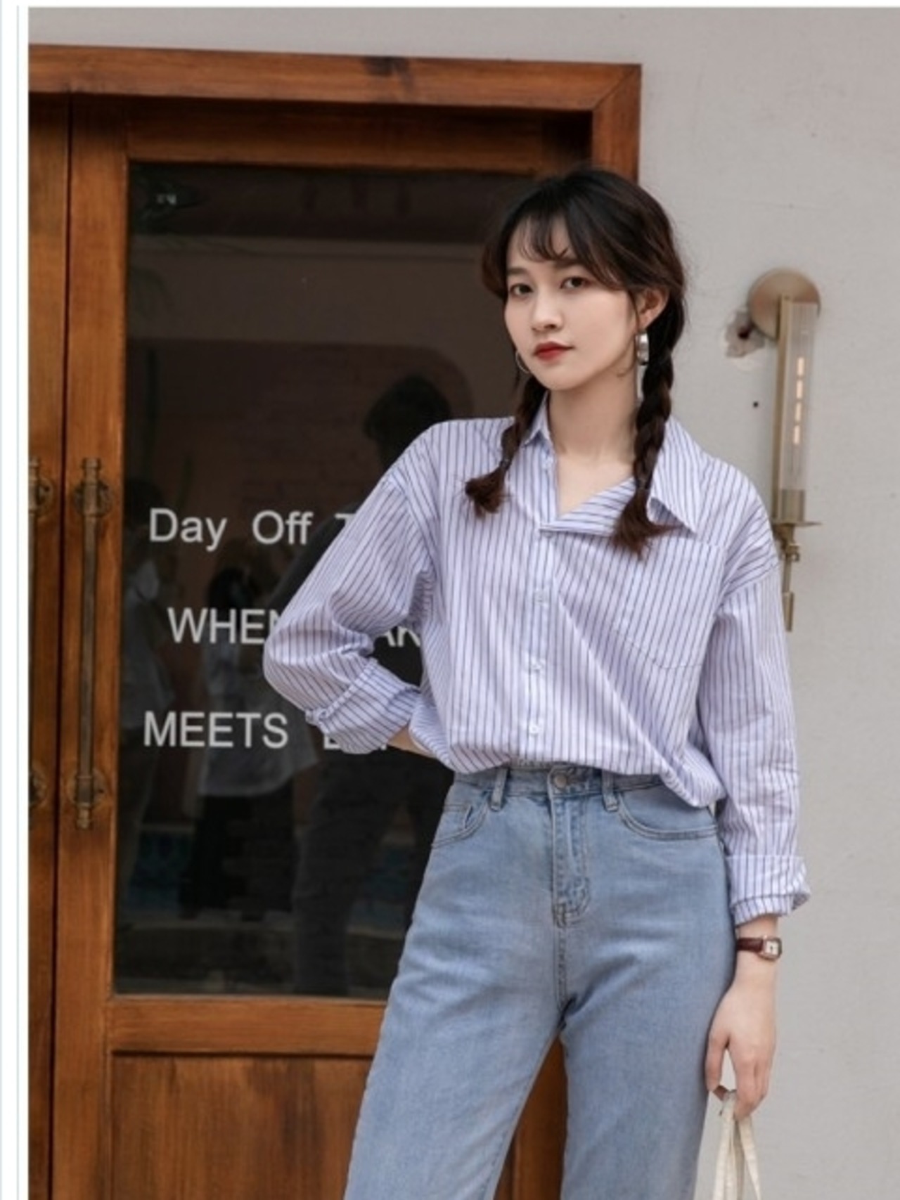 韓国 ファッション レディース トップス セクシー オルチャン 韓国 ファッション ブラウス レディース シャツ トップス ストライプ Vネッ