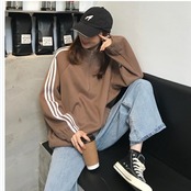 韓国 トレーナー レディース ポロシャツ 配色 ライン ストライプ 長袖トレーナー 韓国 オルチャン 原宿系 K ストリート カジュアル ゆっ
