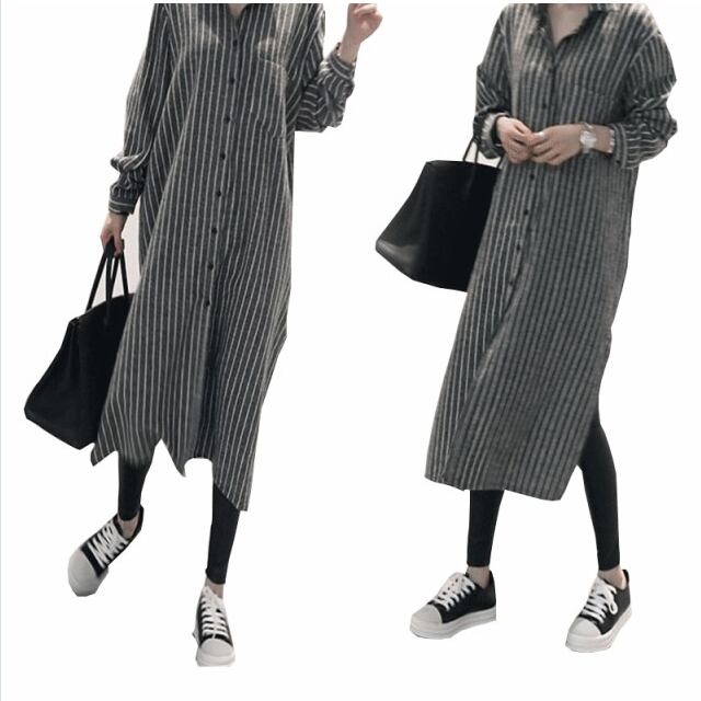 レディース 大きいサイズ 服 ワンピース ロング シャツ レディース 羽織 ストライプ 細身 お出かけ シンプル カジュアル 体型カバー 大き