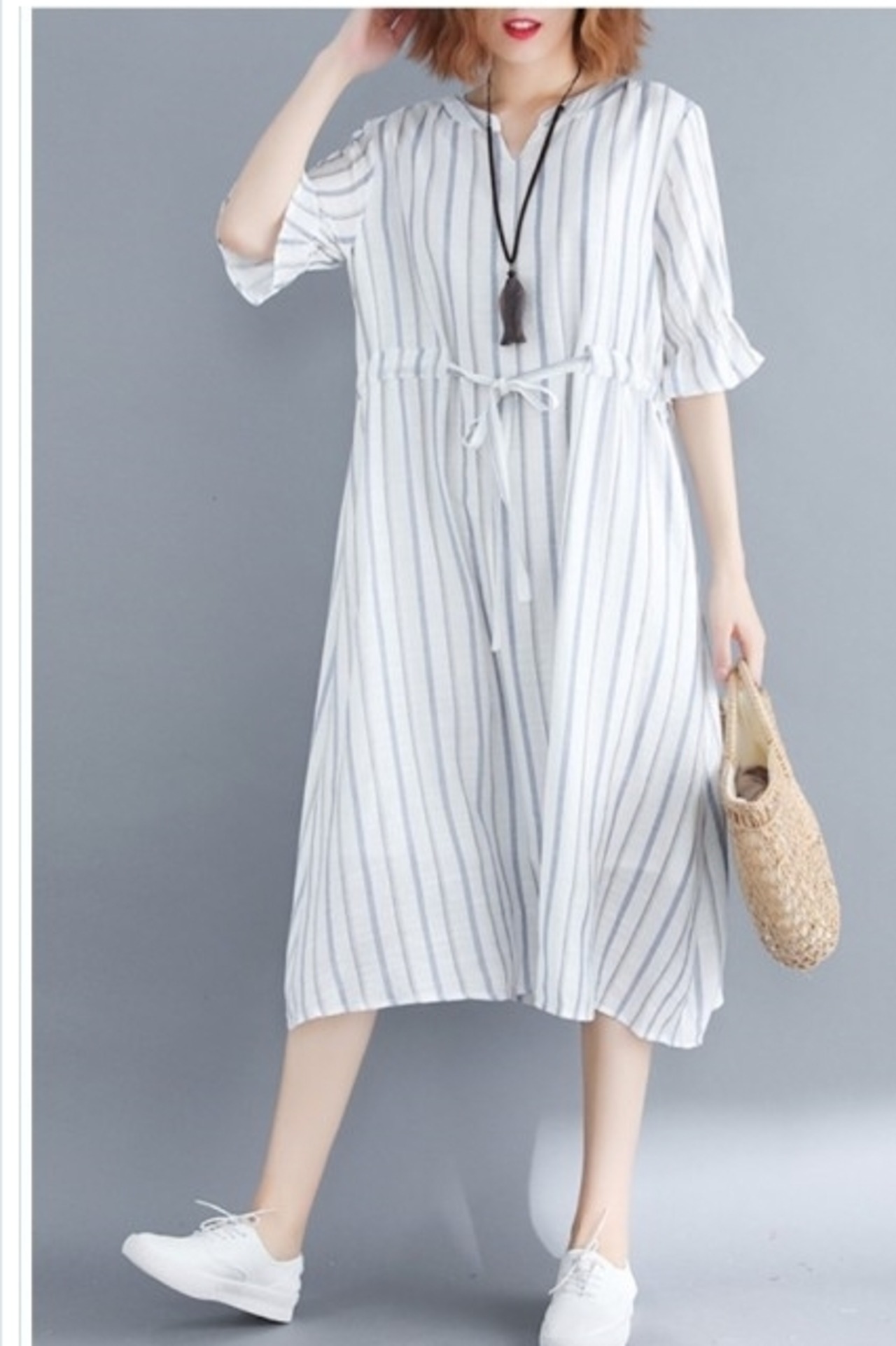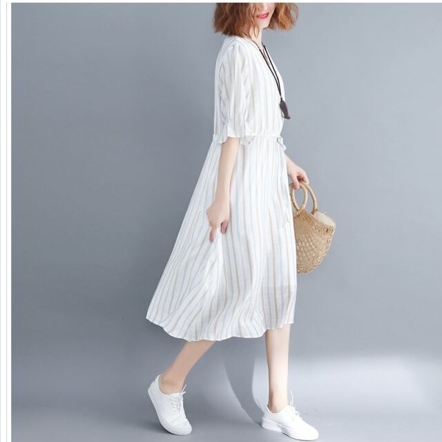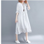 大きいサイズのレディースワンピース 大きいサイズ レディース ワンピース シャツワンピース ストライプ柄 コットンシャツ ロングワンピ