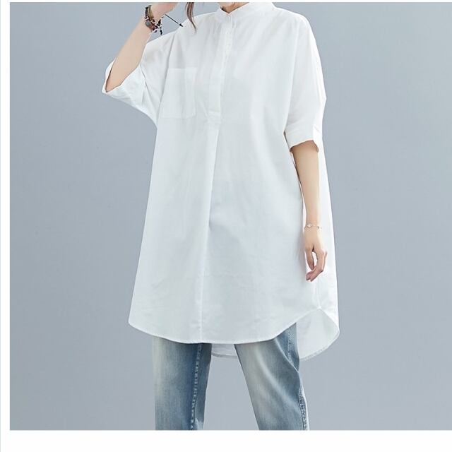 大きいサイズのレディーストップス 夏 ブラウス レディース 夏 シャツ トップス シフォンブラウス 半袖 白シャツ ゆったり 体型カバー ロ