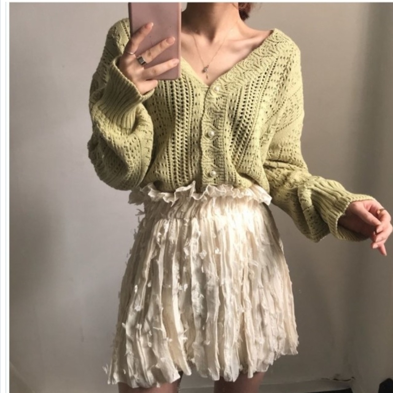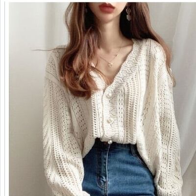 韓国 ファッション レディース トップス セクシー (北海道 沖縄 離島を除く) Vネックレースニットカーディガン ※ホワイトは7 30発送予
